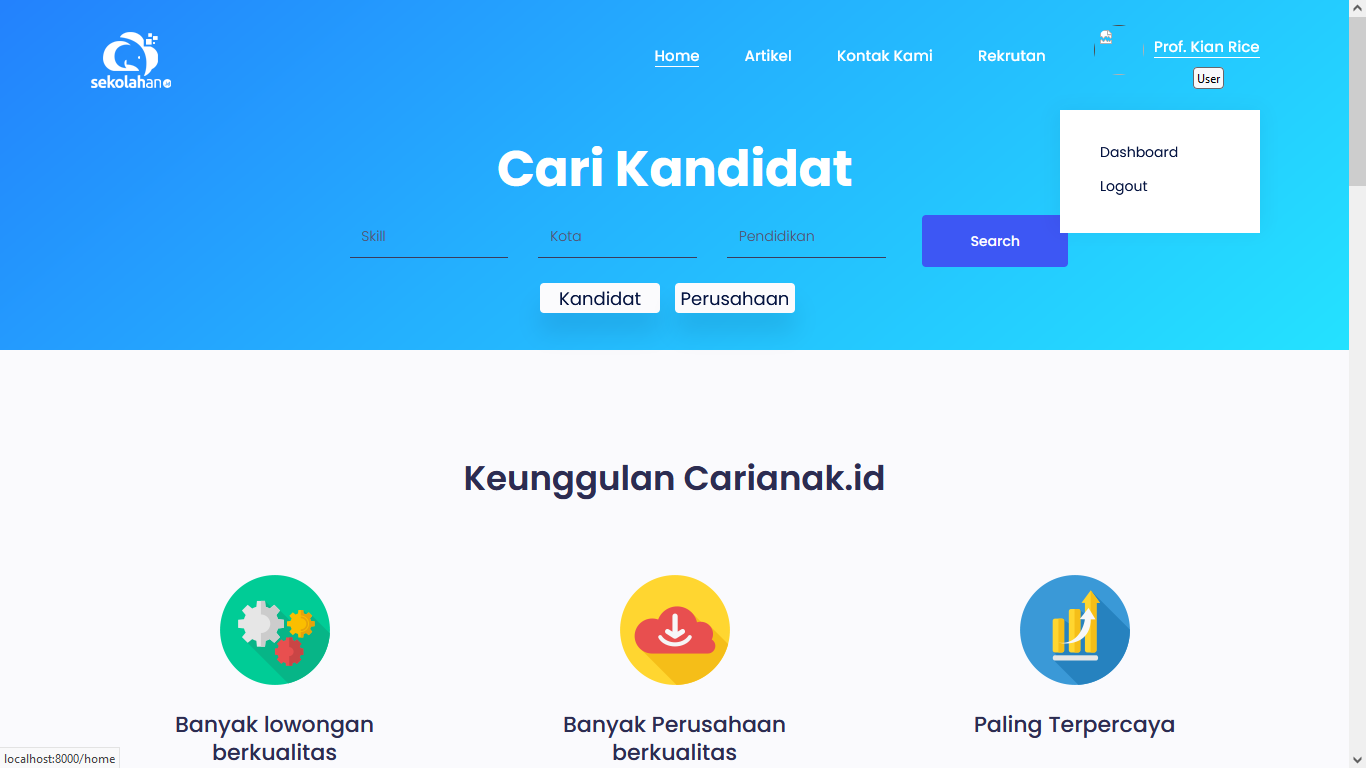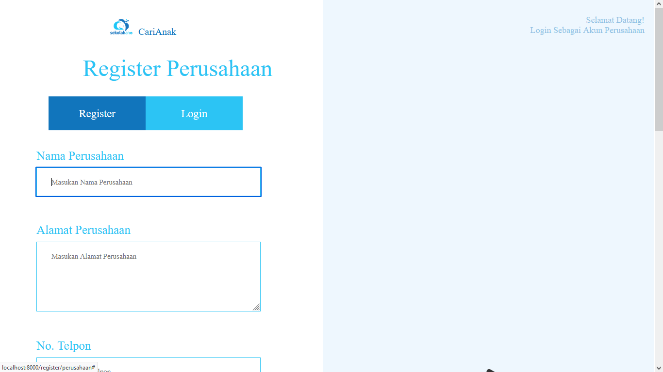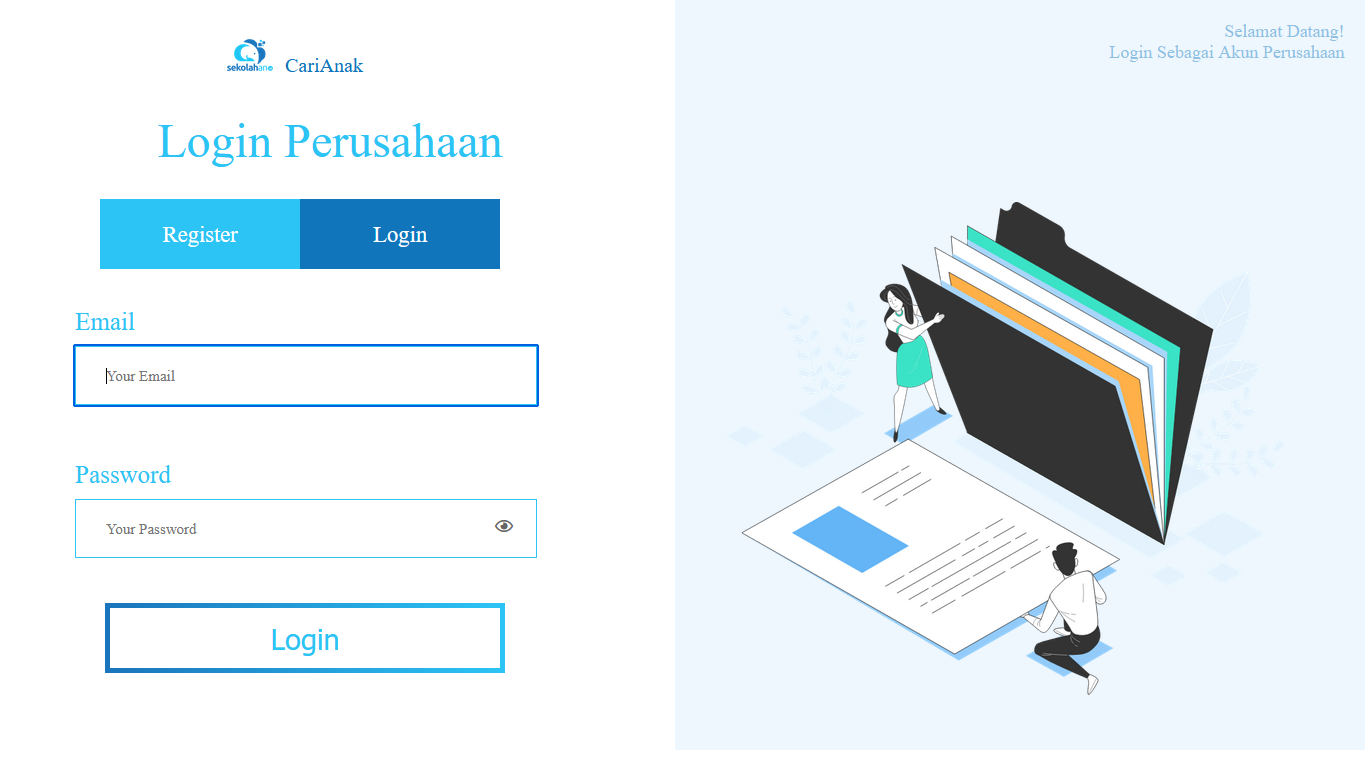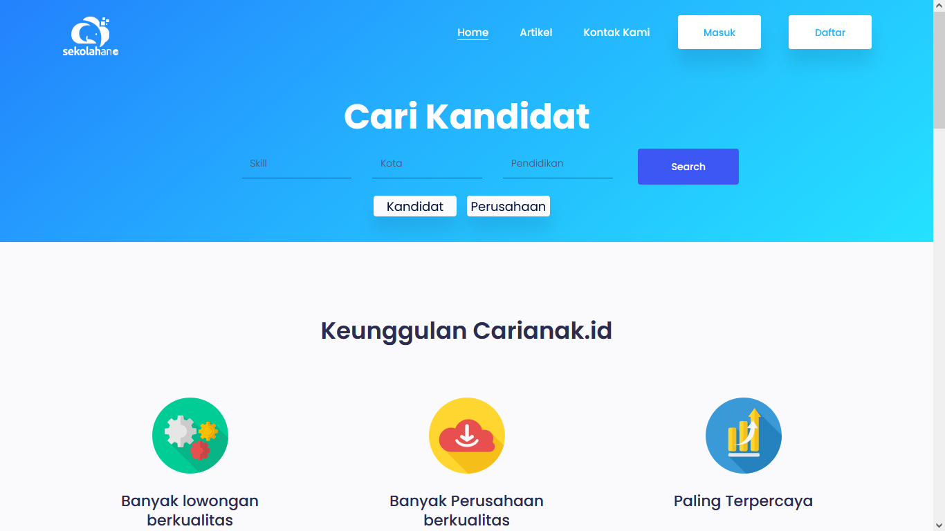 Aplikasi CariAnak.id ini merupakan Aplikasi yang akan di gunakan untuk memudahkan Anak Magang dalam mencari tempat magang di beberapa Perusahan, dan pihak Perusahaan juga dapat merekrut / memberikan undangan untuk kegiatan magang kepada Kandidat Magang / Siswa. Aplikasi ini saya buat pada tahun 2020 pada saat saya sedang melakukan kegiatan Praktik Kerja Industri di PT. For It Asta Solusindo (Sekolahan.id) bersama 1 teman saya. Dalam pembuatan aplikasi ini saya memakai Bahasa PHP dan menggunakan Framework Laravel, dan dalam project ini saya merombak ulang / membuat ulang dari 0 bersama tim saya (tim saya berjumlah 2 orang termasuk saya). Dan saya juga berperan sebagai FullStack Web Developer (membagi tugas dengan teman saya), dan merancang database nya di MySQL
