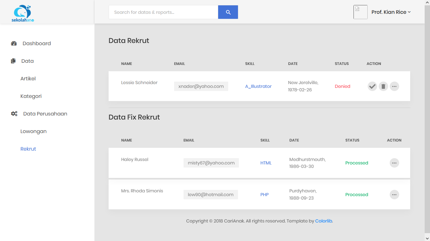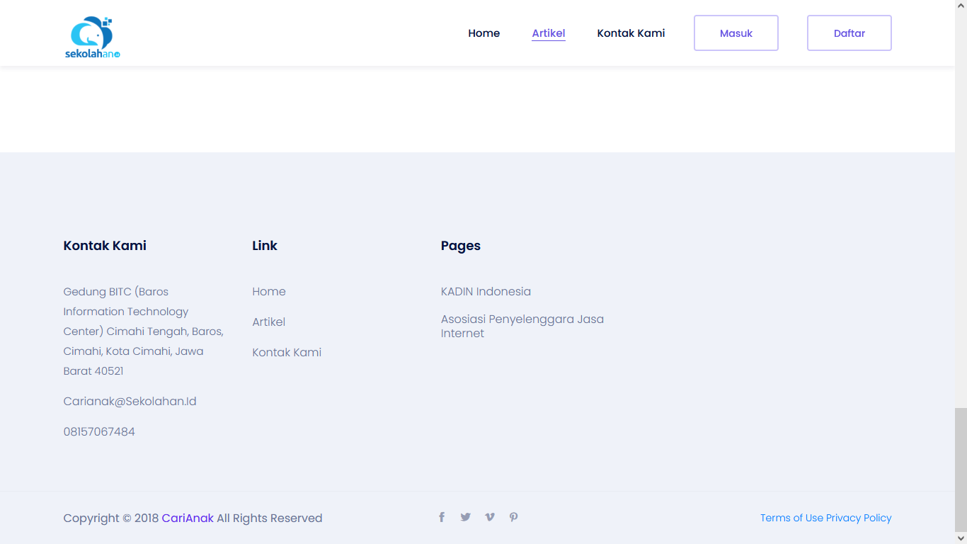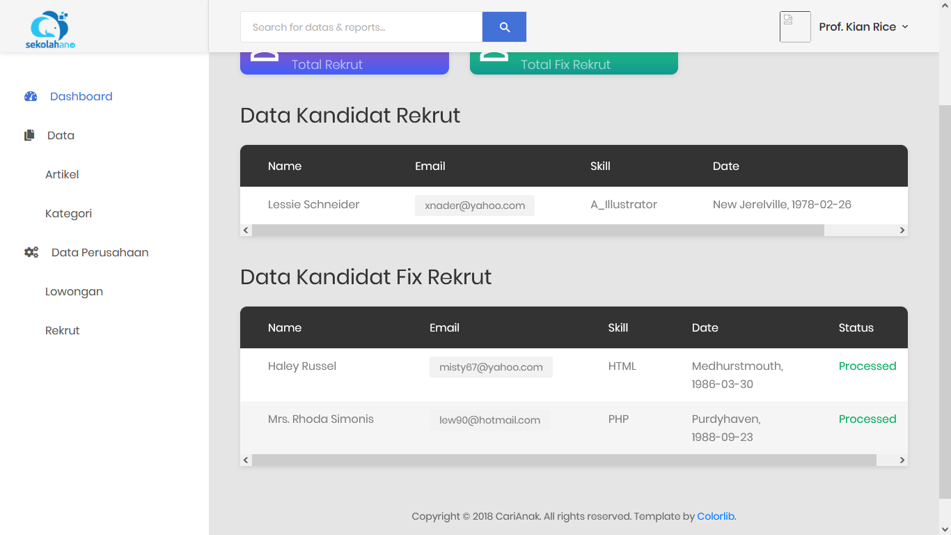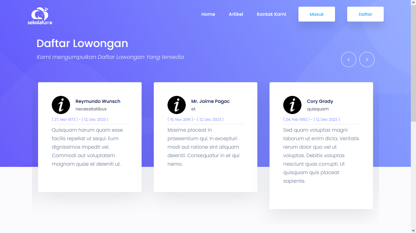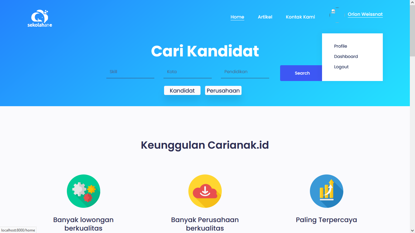 Aplikasi CariAnak.id ini merupakan Aplikasi yang akan di gunakan untuk memudahkan Anak Magang dalam mencari tempat magang di beberapa Perusahan, dan pihak Perusahaan juga dapat merekrut / memberikan undangan untuk kegiatan magang kepada Kandidat Magang / Siswa. Aplikasi ini saya buat pada tahun 2020 pada saat saya sedang melakukan kegiatan Praktik Kerja Industri di PT. For It Asta Solusindo (Sekolahan.id) bersama 1 teman saya. Dalam pembuatan aplikasi ini saya memakai Bahasa PHP dan menggunakan Framework Laravel, dan dalam project ini saya merombak ulang / membuat ulang dari 0 bersama tim saya (tim saya berjumlah 2 orang termasuk saya). Dan saya juga berperan sebagai FullStack Web Developer (membagi tugas dengan teman saya), dan merancang database nya di MySQL
