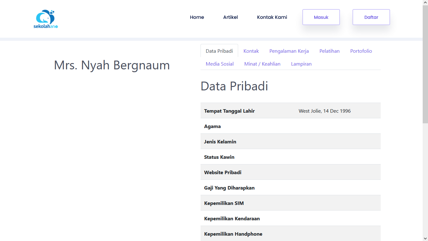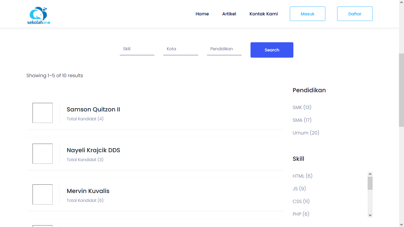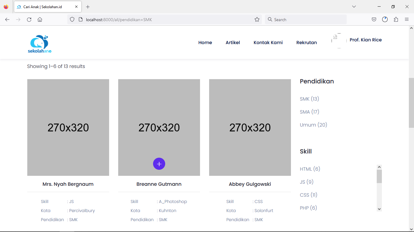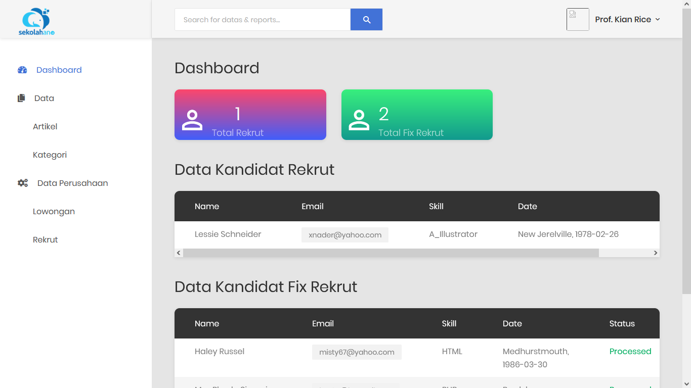 Aplikasi CariAnak.id ini merupakan Aplikasi yang akan di gunakan untuk memudahkan Anak Magang dalam mencari tempat magang di beberapa Perusahan, dan pihak Perusahaan juga dapat merekrut / memberikan undangan untuk kegiatan magang kepada Kandidat Magang / Siswa. Aplikasi ini saya buat pada tahun 2020 pada saat saya sedang melakukan kegiatan Praktik Kerja Industri di PT. For It Asta Solusindo (Sekolahan.id) bersama 1 teman saya. Dalam pembuatan aplikasi ini saya memakai Bahasa PHP dan menggunakan Framework Laravel, dan dalam project ini saya merombak ulang / membuat ulang dari 0 bersama tim saya (tim saya berjumlah 2 orang termasuk saya). Dan saya juga berperan sebagai FullStack Web Developer (membagi tugas dengan teman saya), dan merancang database nya di MySQL