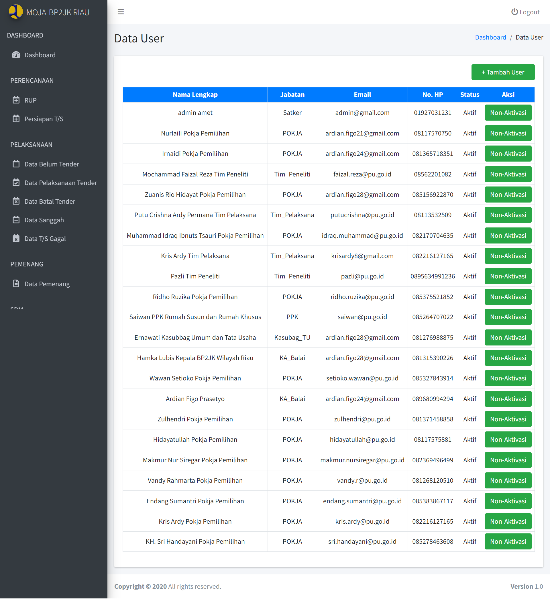 Aplikasi MOJA ini merupakan Aplikasi Monitoring Kerja yang di gunakan di BP2JK Riau. Aplikasi ini saya buat pada tahun 2022 pada saat saya bekerja di PT. Cosmo Mandiri Sejahtera. Dalam pembuatan aplikasi ini saya memakai Bahasa PHP dan menggunakan Framework CodeIgniter, dan dalam project ini saya melanjutkan Aplikasi ini dari Developer sebelumnya dan melakukan beberapa penyesuaian / perubahan serta men-Fixing beberapa bug pada Aplikasi ini. Dan saya juga berperan sebagai FullStack Web Developer, mengubah sedikit database nya di MySQL, serta men-Hosting nya di dalam Cpanel pada Aplikasi MOJA ini